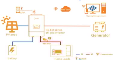 We offer the following two types of inverter and battery solutions for Hybrid and OFF-GRID systems.